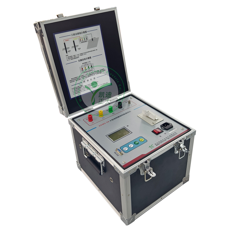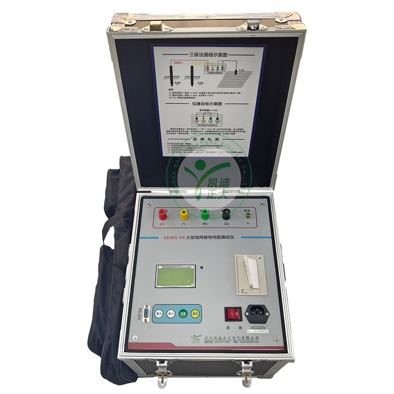 KDWS-5A型大型地網(wǎng)接地電阻測試儀,可測變電站地網(wǎng)(4Ω)、水火電廠、微波站(10Ω)、避雷針(10Ω)多用機(jī)型,采用了新型變頻交流電源,并采用了微機(jī)處理控制和信號處理等措施,很好的解決了測試過程中的抗干擾問題,簡化了試驗(yàn)操作過程,提高了測試結(jié)果的精度和準(zhǔn)確性,大大降低了試驗(yàn)人員的勞動(dòng)強(qiáng)度和試驗(yàn)成本。