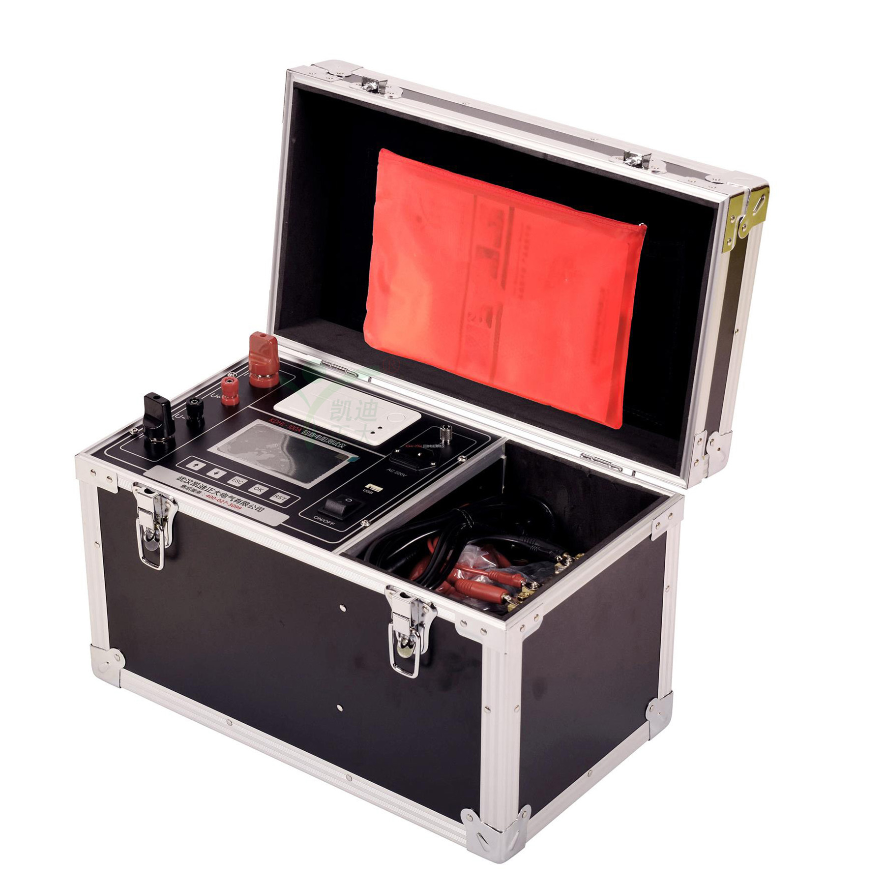KDHL-100A回路電阻測試儀也稱斷路器導(dǎo)電回路。是檢測導(dǎo)電性能的好壞,對保障開關(guān)的安全運行具有重要作用。導(dǎo)電性能的優(yōu)劣可以通過導(dǎo)電回路電阻的大小反映出來。因此IEC標(biāo)準(zhǔn)及制造廠都規(guī)定應(yīng)測量回路電阻,并且對各種形式的開關(guān)的回路電阻有明確規(guī)定指標(biāo)。一般過去使用雙臂電橋。由于電橋的電壓,電流都比較小,當(dāng)開關(guān)的動靜觸頭之間有雜質(zhì)或表面有氧化等,測試的數(shù)據(jù)分散性就較大。同時電橋的抗干擾性差,因此國家標(biāo)準(zhǔn)規(guī)定必須使用200A以上直流電流進行測試。回路電阻測試儀是我公司為適應(yīng)GB50150-2006和DL/T 845.4-2004規(guī)程要求開發(fā)的測試儀器,廣泛適用于各種電器開關(guān)的接觸電阻、回路電阻及電纜電線、焊縫接觸電阻的測量。
