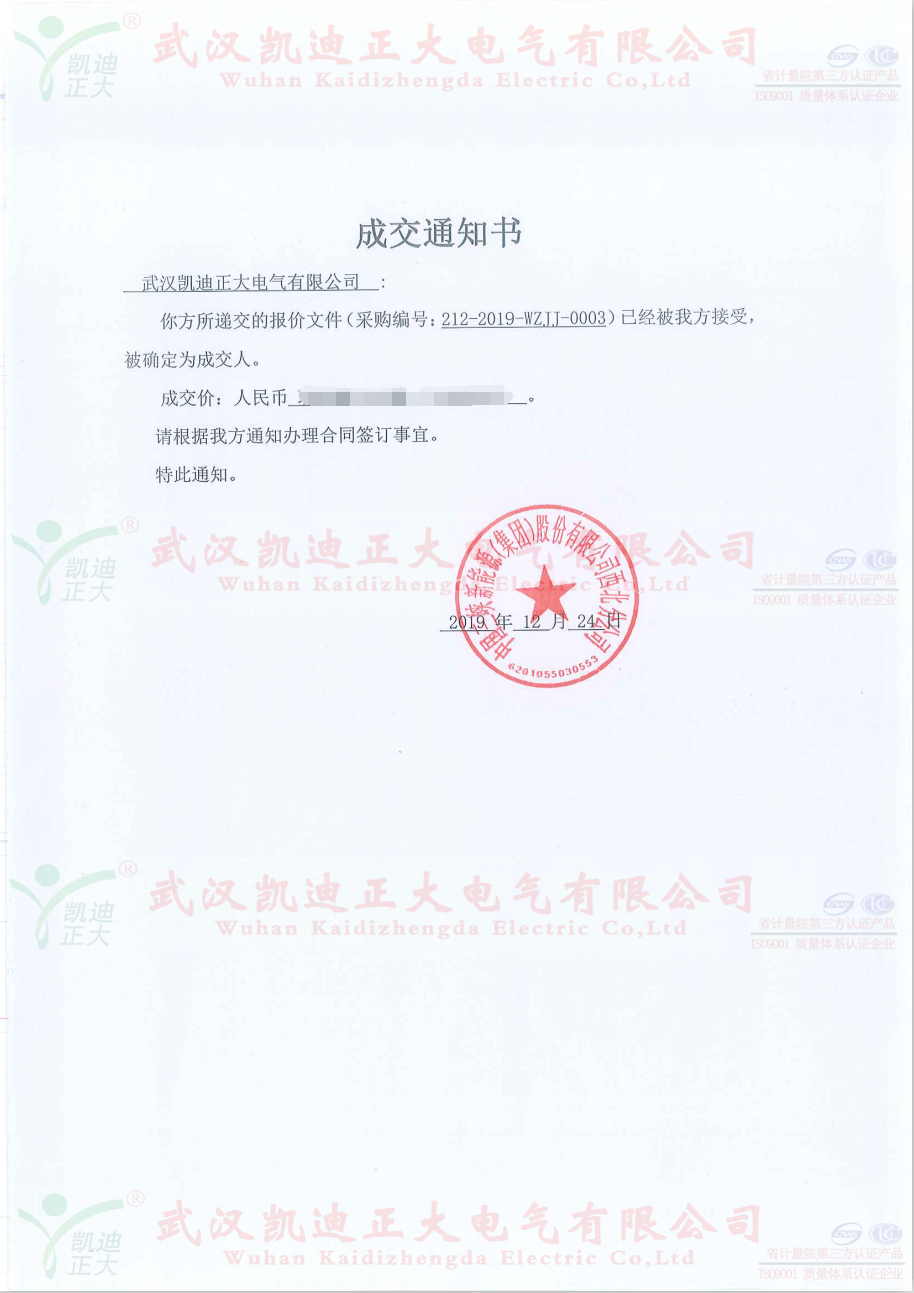 2020年上班的第一天收到中國(guó)三峽新能源(集團(tuán))股份有限公司西北分公司,采購(gòu)編號(hào):212-2019-WZJJ-0003的中標(biāo)通知書。友好的合作為我司2020年開(kāi)啟了新的啟程,“玖”字開(kāi)頭更是中華習(xí)俗千年的好兆頭,長(zhǎng)長(zhǎng)久久、紅紅火火。祝愿兩家公司的精誠(chéng)合作,為中國(guó)電力事業(yè)在新的一年打下堅(jiān)實(shí)的基礎(chǔ),在未來(lái)的一年里再創(chuàng)輝煌。