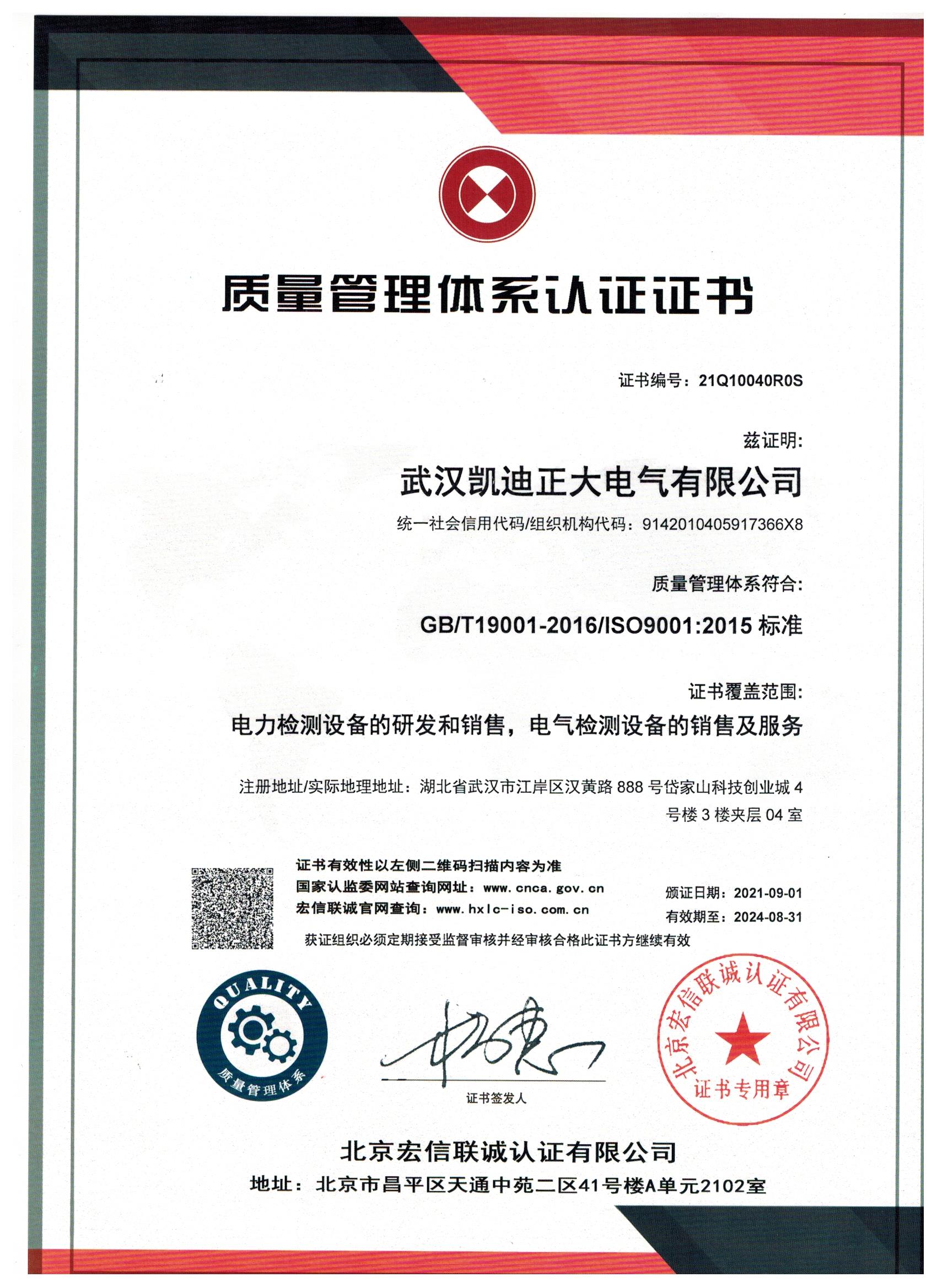 凱迪正大公司獲得QES三標體系是質量管理體系(ISO9001)、環境管理體系(ISO14001)、職業安全健康(ISO45001)這三個體系整合的簡稱。本次質量認證外審工作由中國質量認證中心負責,QES三體系認證有助于凱迪正大不斷提高公司質量管理,增強顧客滿意度,同時可以通過建立文件化的管理體系,促進凱迪正大持續改進,隨著經濟全球化趨勢日益明顯,越來越多的企業將實施全球化經濟戰略,凱迪正大也是如此,我司將根據審核組的意見和建議,加大管理體系標準、文件的學習力度,確保全員參與管理體系的貫標工作;進一步加強日常監督和指導,對個別不合格項立即整改,持續改進、完善QES管理體系,切實提高運行質量,對客戶負責,服務公司高質量發展。